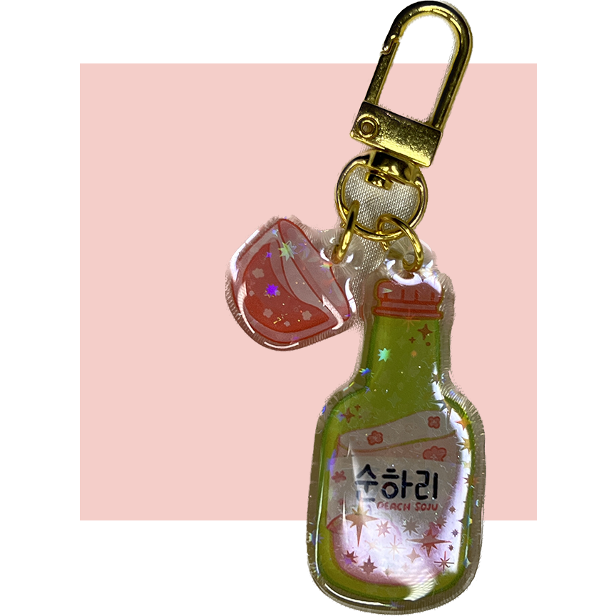peach soju keychain